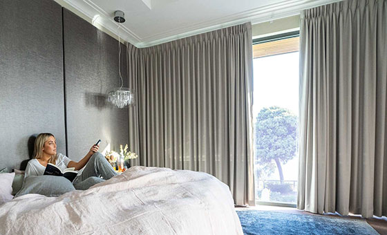 – Ahogy a redőnyök, zsaluziák, úgy a lakás függönyei is lehetnek motorosan működtethetőek, ezáltal az okosotthon által is felügyeltek. Besegíthetnek a helyiség temperálásába, távollétünkben a jelenlét-szimulációba. Beállíthatjuk, hogy szürkületkor (a vezérlőközpontok internetkapcsolat esetén tudják, hogy földrajzi helyükön pontosan mikor van naplemente) a sötétítő függönyök automatikusan záródjanak be, megakadályozva kívülről a belátást. A szürkület helyett olyan eseményekhez is köthető a függönyök behúzása, mint pl. a riasztó hatástalanítása, mobiltelefonunk GPS-pozíciója (ha este felé X méterre megközelítjük a lakásunkat, azaz mindjárt hazaérünk), vagy éppen a villany felkapcsolása a helyiségben, ahol már túl sötét volt a kapcsoló megnyomása előtt.